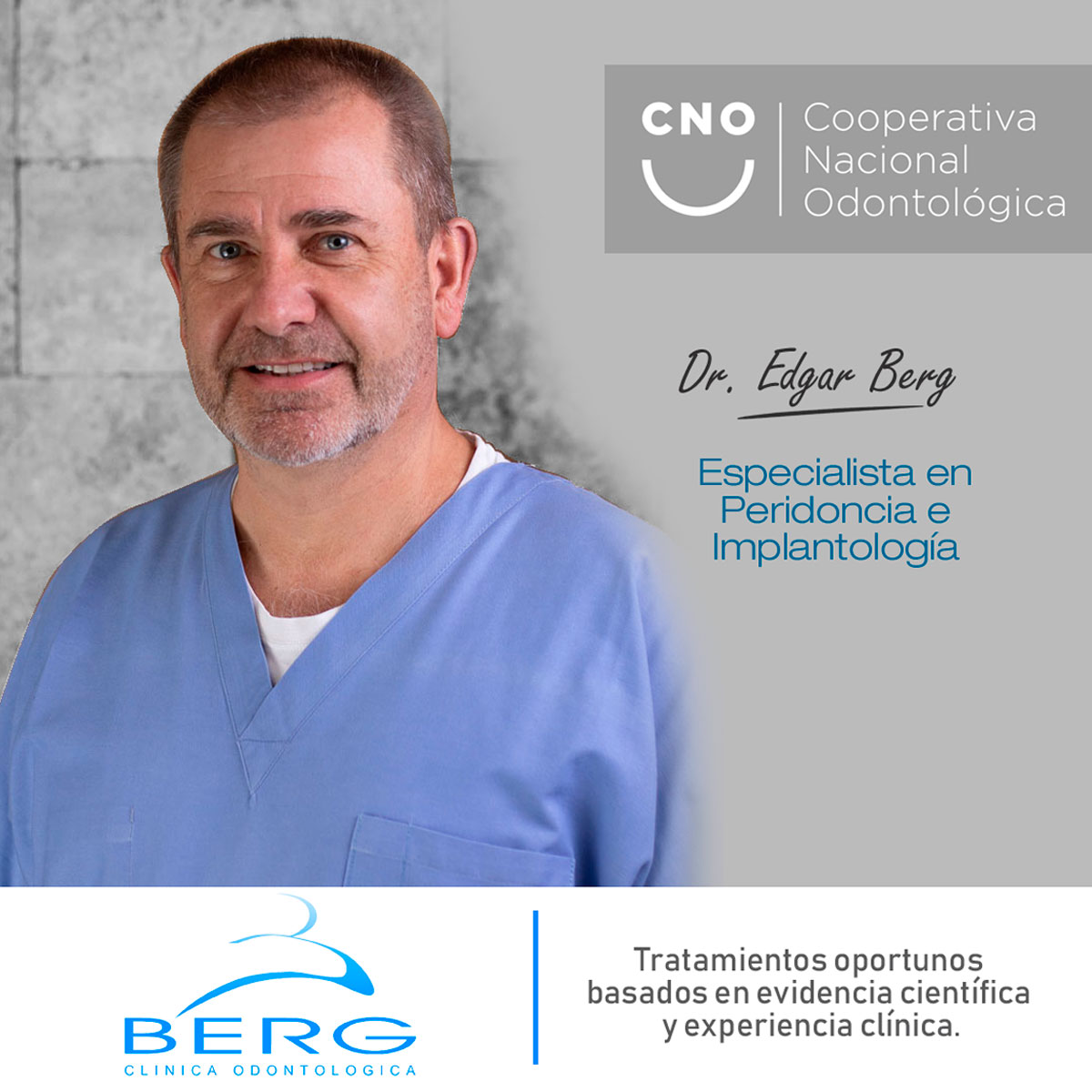 El Dr. Berg es Cirujano Dentista de la Universidad de Concepción, especialista en Periodoncia e Implantología Oral.
